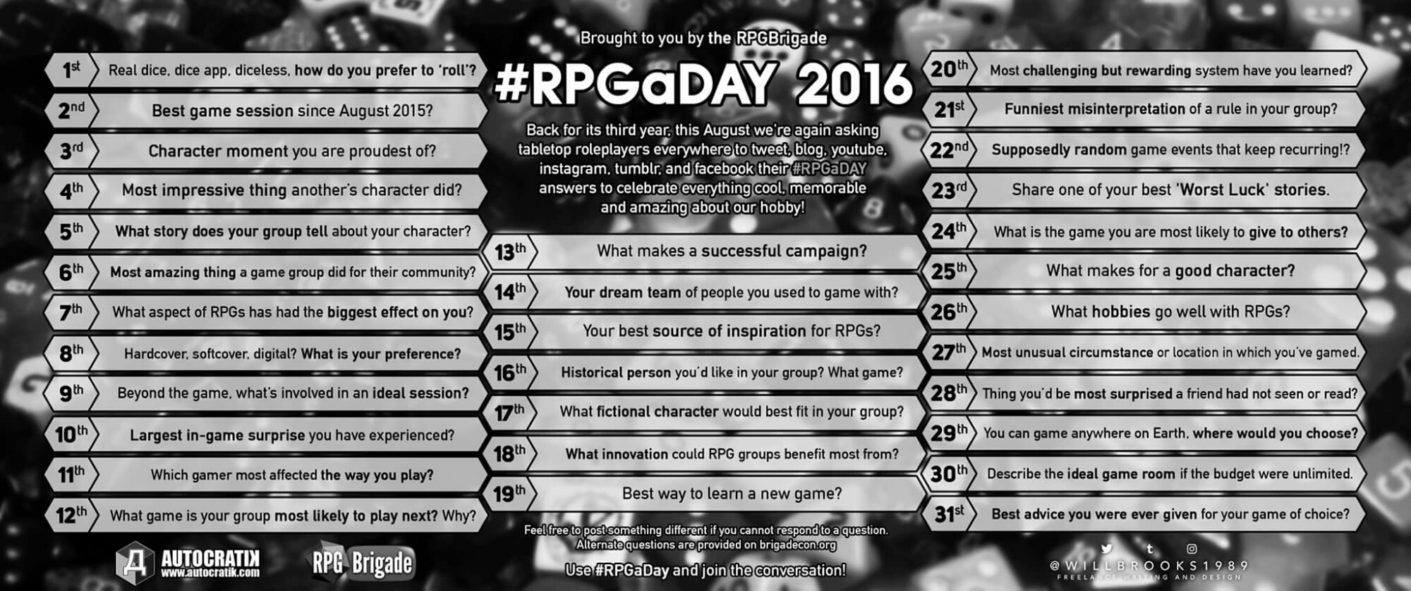 Filed under BrigadeCon, Playing in Games, RPGaday, Running Games, The Blog, The Gamers, YouTube Channel · Tagged with roleplaying, RPGaday