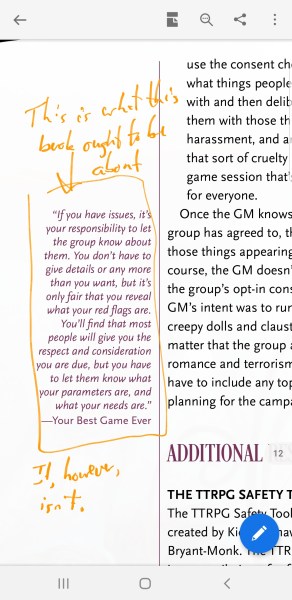 With conscience as the guide, there is much that affects different contexts of gaming (such as public play in convention spaces) which might simply never arise – and if it does, it can be handled among friends. The excellent tools now very easily found complied in the TTRPG Safety Toolkit have been for years, are, and continue to be effective examples of doing just that.