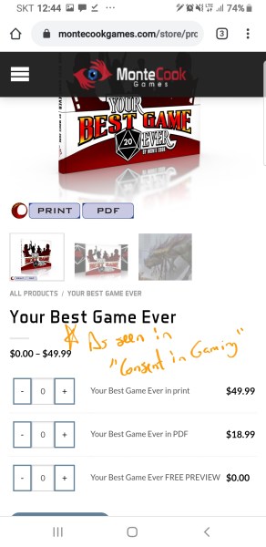 Why was the PDF released when it was? Why does it bear the Cypher System logo on each interior page while billing itself as system neutral? Why were the two authors chosen to be the authors? Why do they quote extensively (exclusively?) from the Monte Cook Games GM advice book, Your Best Game Ever ? Why does the PDF attempt to frame RPGs as being built on Consent? Where does joining a group and choosing a game to play fit into this consent-centric paradigm of gaming? Is this PDF focused on public and convention gaming – does it indicate its target audience and context? Where is the justification that RPG playing must begin with gaining consent as demonstrated in the following statement from page 2 of the PDF (the first page of text):