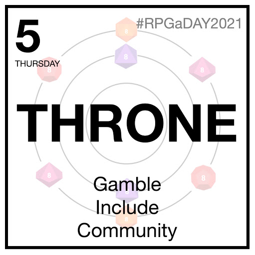 Thursday brings us to August 5th and thus the 5th prompt of #RPGaDay2021. Of the four options, today my eye is drawn toward the second. Of the four, throne, gamble, include, and community, much can be said and it is a hard choice, but something keeps pulling my eye to the gamble prompt so it’s time to see why that is.