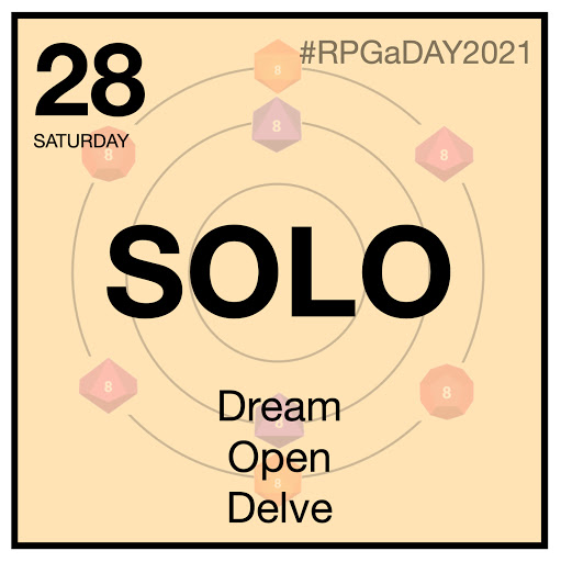 We are just a few nights and days away from the end of this #RPGaDay2021 marathon and the optimistic vision it represents that all of us can find good things to say about a hobby we love for 31 days. As a sign of the end times, today is the last day of varied prompts that we can wander among and find inspiration. Our final set of four prompts are Solo, Dream, Open, and Delve. Ahead are three days of single prompts to bring the event to a close for 2021. For the last Saturday, the last day of multiple prompts, and the end of the last full week of responses, I found myself hoping for dream but submitted myself to the roll of a die. Once again in celebration of eight years of RPGaDay, I rolled a D8, but rather than take the results in pairs, I decided to mix it up a little bit with odds and evens: 1 or 3 would be Solo, 2 or 4 would be Dream, 5 or 7 would be Open, and 6 or 8 would be Delve. The result?