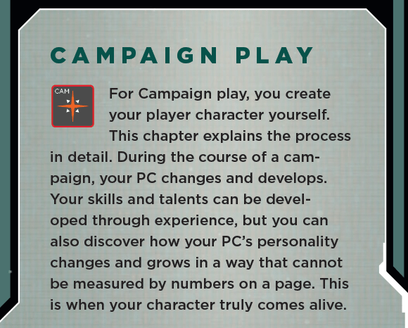 In campaign play, the group is expected to collaborate on the occupation of their characters from a list and this in turn will influence the basic situations of play.