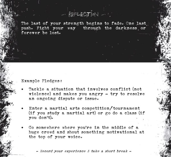 Could you do one of these? What would stop some of you? What makes it an easy ask for others? What about the other pledges for the other trials in the game’s gritty hell? On which trial do these pledges become too much, or your resistance to change, risk, vulnerability, scrutiny, or some other thing hold you in place – static. Is life really as dynamic as we think it is when so often some part of us fights tooth and claw to defy some sort of movement from one state to another?