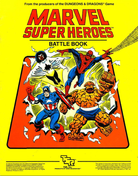 I have only ever been in the same room with the actual set once. I had a chance to play it one night with friends of friends and we had a great time. We made our own characters and tried to save the day. Fortunately, the GM, like me, had no interest in us running actual Marvel heroes. That night of play showed me a lot about the system, and I really liked what I saw. It made a big impression, and interestingly to me, when I got a chance a few years later to try DC Heroes, it had to compete with Marvel Super Heroes in the same way that Marvel comics had had to compete with DC comics for my attention years before.