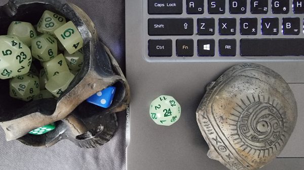 Events like RPGaDAY aren’t year-long activities, however, and all year, from year to year and era to era, communities within that larger community take precedence in our bonding and banding together over the games we play. I enjoy how gamers can unite over games they loved as kids and haven’t played since high school. I love it when they bond over games they are playing now or over games that they have never been able to play. The tell-tale love of dice or the appraising eye when passing a bookshelf catch my attention. I smile when I meet people still playing the same game the same way with the same people even after the kids they grew up to have have grown up to have their own kids. I smile wider when I meet people still learning and sharing new games and new ways to play. I love the quest to finally get or finally replace a game, and I love the moments when new players join a group and later when they GM for the first time.