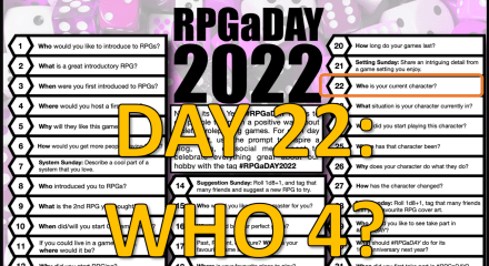Who is your current character? Who is asking? #RPGaDay2022 wants to know! Are you always the GM? Don’t worry – there are more answers for you to give than for the players!