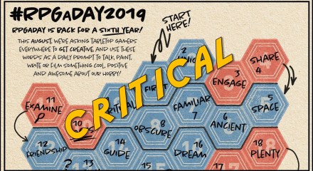 The prompt for August 9, 2019 for #RPGaDay is the word ‘critical’. This is a busy word with lots going on in the minds of gamers and non-gamers alike. Ranging from complaints to degrees of importance and beyond, this word can be explosive. What sort of reaction will it set off in your mind today? … Continue reading →